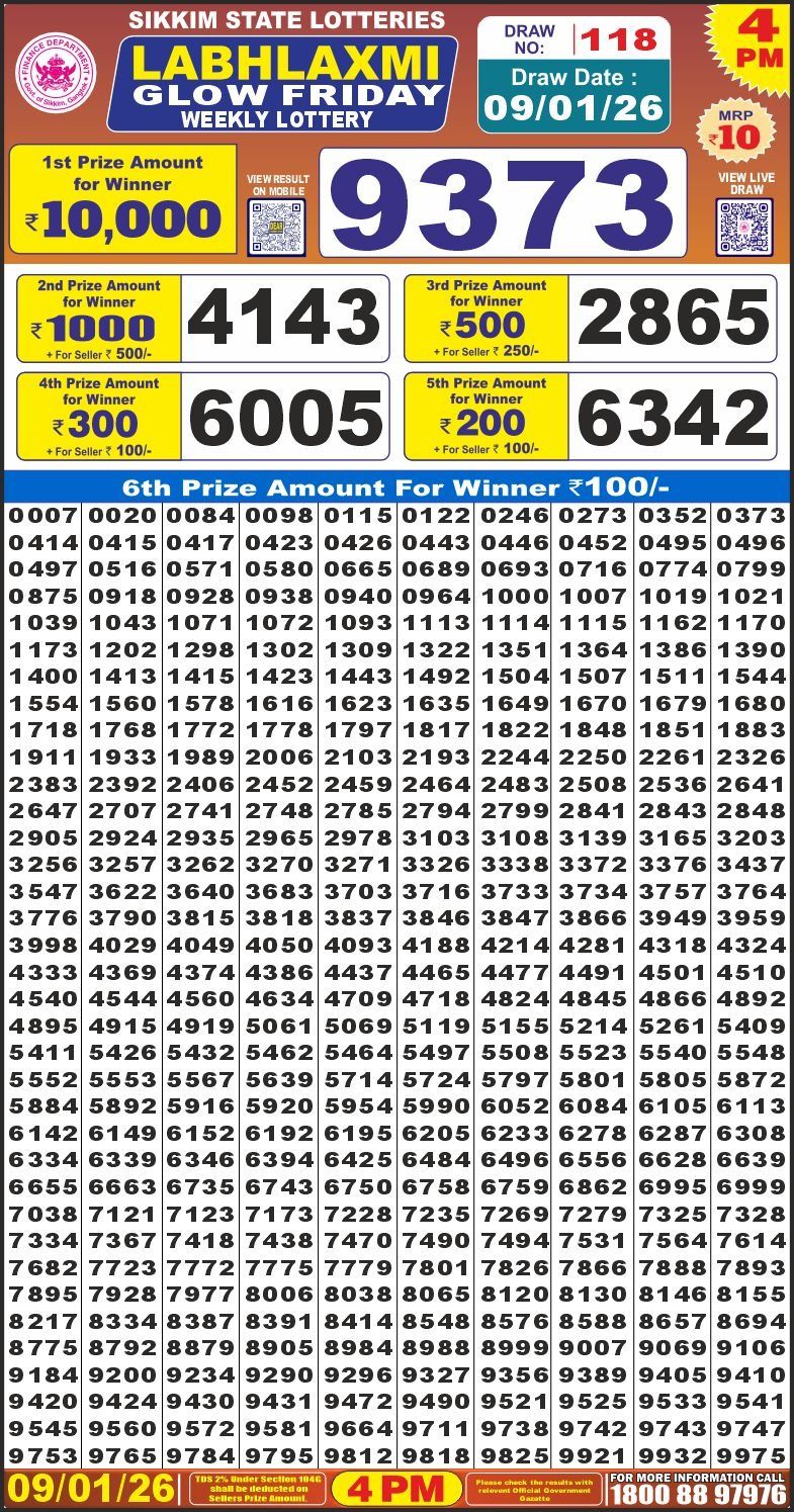 Result Released: The official winning chart for Labh Laxmi Glow Weekly Lottery Result 4 PM (09/01/26) is now available below. Good luck!