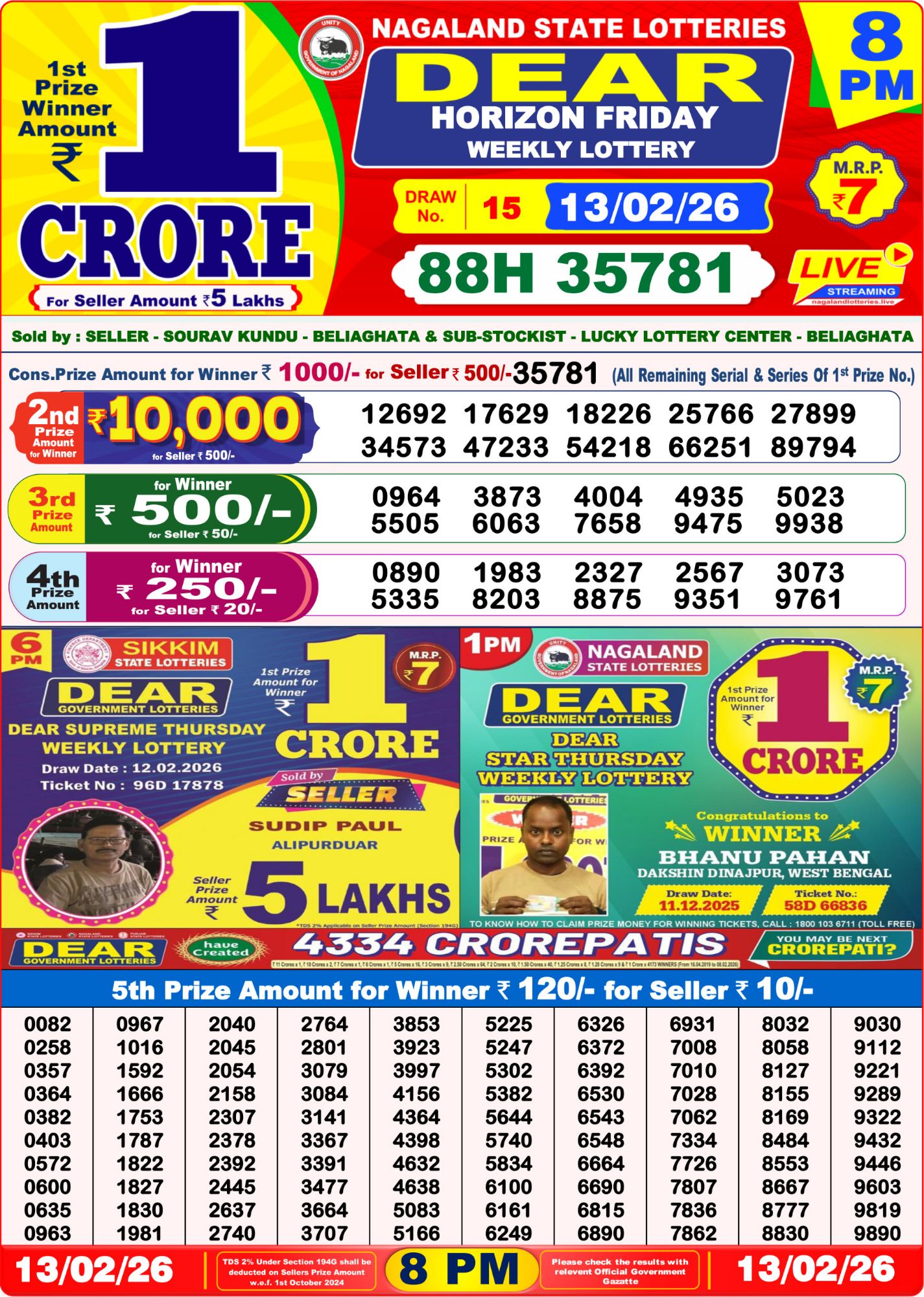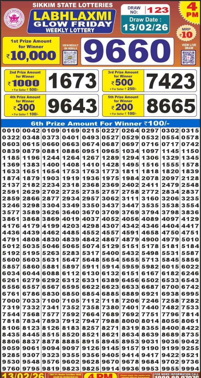 Lottery Results Today Live Coverage โ 13 February 2026