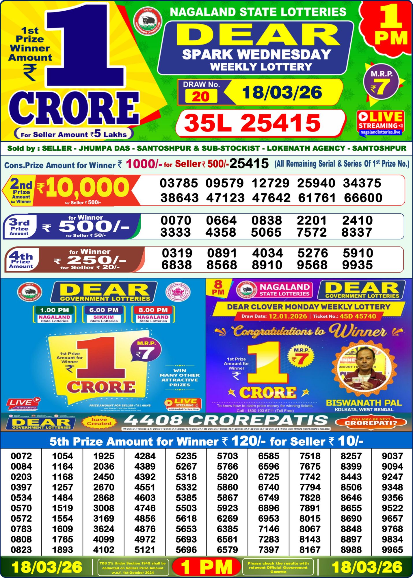 Result Released: The official winning chart for Dear Spark Weekly Lottery Result 1 PM (18/03/26) is now available below. Good luck!