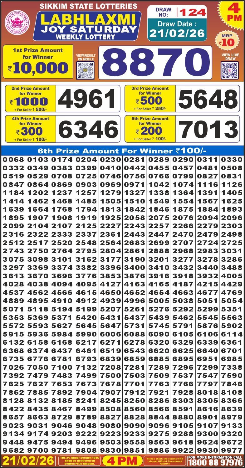 Lottery Results Today Live Coverage โ€“ 21 February 2026